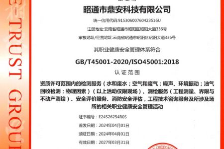 2003年11月10日,昭通市鼎安科技有限公司成立,初始主要從事第三方安全工程技術(shù)服務(wù),經(jīng)多年運(yùn)營(yíng),發(fā)展為多專(zhuān)業(yè)綜合科技平臺(tái),為社會(huì)提供多種專(zhuān)業(yè)技術(shù)服務(wù)工作。 現(xiàn)公司注冊(cè)資金為1200萬(wàn)元,公司法定代表人:毛衛(wèi)旭。公司主要業(yè)務(wù):安全評(píng)價(jià)、安全標(biāo)準(zhǔn)化評(píng)審、安全工程技術(shù)服務(wù);環(huán)境監(jiān)測(cè)、職業(yè)衛(wèi)生檢測(cè)、檢驗(yàn);法律訴訟及非訴訟服務(wù);司法鑒定、固定資產(chǎn)投資項(xiàng)目節(jié)能服務(wù);工程咨詢;工程測(cè)量測(cè)繪;安全教育培訓(xùn)等。是安全生產(chǎn)服務(wù)、安全教育培訓(xùn)機(jī)構(gòu),也是環(huán)境監(jiān)測(cè)和職業(yè)衛(wèi)生服務(wù)機(jī)構(gòu),同時(shí)也是綜合的檢測(cè)檢驗(yàn)、綜合科技平臺(tái)服務(wù)機(jī)構(gòu)。多年來(lái)為公、檢、法、司、軍、警、海關(guān)、仲裁、安監(jiān)、工礦商貿(mào)企業(yè)、社會(huì)團(tuán)體及個(gè)人提供多專(zhuān)業(yè)技術(shù)服務(wù)。